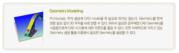 | Pointwise´Â °ÝÀÚ »ý¼º¿¡ CAD modelÀ» ²À ÇÊ¿ä·Î ÇÏÁö´Â ¾Ê´Â´Ù. Geometry¸¦ ¸ÕÀú ¸¸µé ÇÊ¿ä ¾øÀÌ3D °ÝÀÚ¸¦ ¹Ù·Î ¸¸µé ¼ö ÀÖ´Ù. µû¶ó¼ ÇÊ¿äÇÑ °æ¿ì¿¡¸¸ CAD Geometry¸¦ »ç¿ëÇÔÀ¸·Î½á CAD ½Ã½ºÅÛ¿¡ ´ëÇÑ ÀÇÁ¸µµ¸¦ ÁÙÀÏ ¼ö ÀÖ´Ù. ¶ÇÇÑ ÀÚüÀûÀ¸·Î °¡Áö°í ÀÖ´Â Geometry »ý¼º ÅøÀ» ÀÌ¿ëÇØ¼ ÇÊ¿äÇÑ Geometry¸¦ »ý¼ºÇÒ ¼ö ÀÖ´Ù. º¹ÀâÇÑ CAD model¿¡ °ÝÀÚ¸¦ »ý¼ºÇÒ ¶§ CAD topology¿Í´Â µ¶¸³ÀûÀ¸·Î °ÝÀÚ¸¦ »ý¼ºÇÒ ¼ö ÀÖ´Ù. µû¶ó¼ °ÝÀÚ´Â Àüü CAD surface¿¡ ±¸¼ÓµÉ ¼öµµ ÀÖ°í, ÀϺΠsurface¿¡¸¸ ±¸¼ÓµÉ ¼öµµ ÀÖ´Ù. |